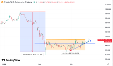 Bitcoin’s price action in February was clearly bearish, with several technical warning signals appearing throughout the month. After failing to hold above USD 70,000 early in the period, BTC entered a series of sharp sell-offs.