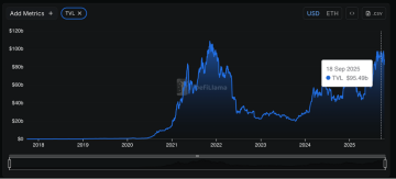 Ethereum also experienced increased institutional interest, albeit more modest than Bitcoin. ETFs focused on Ethereum reported a net inflow of approximately $286 million in September – which is positive, though smaller compared to Bitcoin. Some institutions realized profits on ETH after strong summer growth, and the overall appetite for investing in Ether was somewhat dampened by an uncertain macroeconomic environment. However, at the end of the month, specifically on September 29, Ether funds recorded a record daily inflow of $547 million, signaling that large buyers stepped in as prices dropped – possibly driven by an arbitrage effect (capital rotation from gold, which was rising sharply at the time, into undervalued ETH) and a change in the Fed's tone toward a more accommodative policy. On-chain data shows that the total value locked (TVL) in the Ethereum ecosystem (DeFi projects) continued to grow in September, supporting demand for ETH as collateral. Ethereum staking continued to offer yields of up to 6% per annum, which may have attracted additional capital.