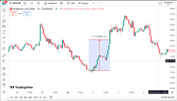 Our worst trade was closed by the GGS strategy on the AVAXUSDT pair. The strategy opened a short position, betting that the price would go down. The GGS strategy trades price movements in the direction of the trend, using various timeframes. The drop over a few days was evaluated as a developing trend, and the strategy traded on its continuation. However, the price of Avalanche (AVAX) started rising, and the trade was closed.
