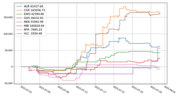 Throughout July 2025, our automated algorithmic trading strategies executed 367 trades, and our result for the month was +23%.