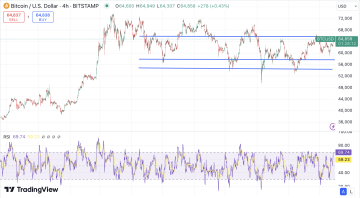 Aktuálně se cena bitcoinu hýbe v rozpětí mezi rezistencí (cenovou hranicí, kterou má trh problémy překročit) kolem 65000-66000 USD a supportem (cenovou hranicí, pod kterou trh typicky nepropadne) kolem 58 000 USD a nižší support se poté nachází kolem 54 000 USD.