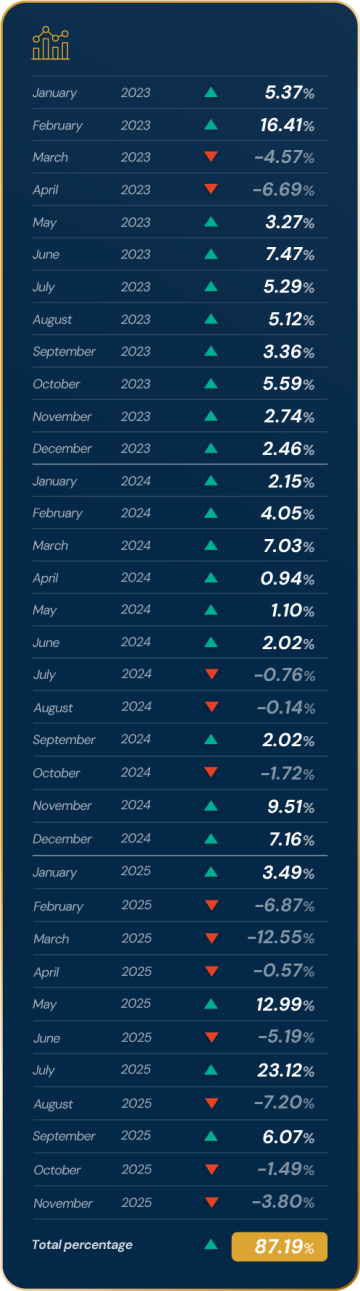 Earnio's trading strategies have been deployed in the markets since 2020, and since 2023.