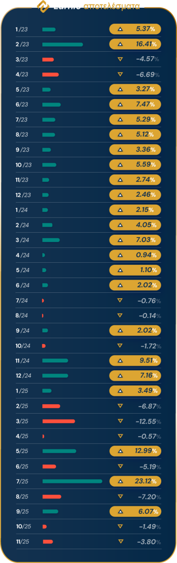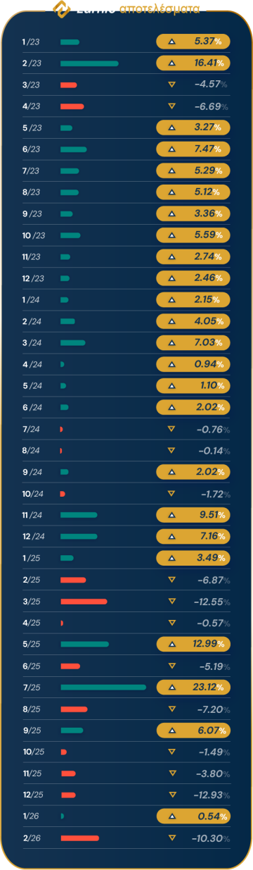 Οι αυτοματοποιημένες στρατηγικές μας προσαρμόζονται στις συνθήκες της αγοράς, αξιοποιώντας τις τελευταίες τάσεις και ευκαιρίες για τη βελτίωση της απόδοσής της μακροπρόθεσμα.